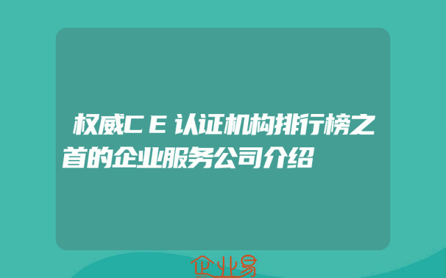 - 权威CE认证机构排行榜之首的企业服务公司介绍