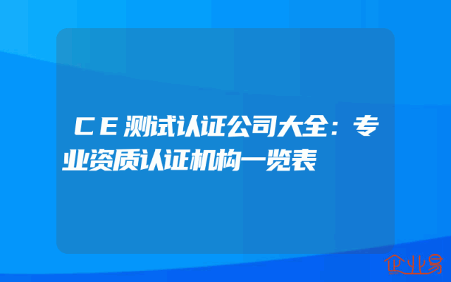- CE测试认证公司大全:专业资质认证机构一览表