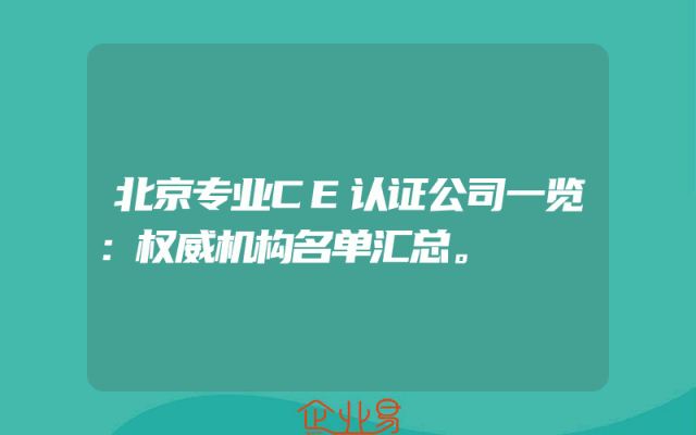 - 北京专业CE认证公司一览:权威机构名单汇总。