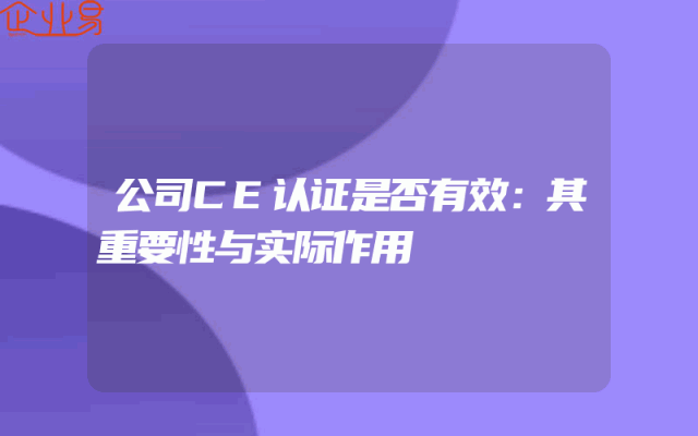 - 公司CE认证是否有效:其重要性与实际作用