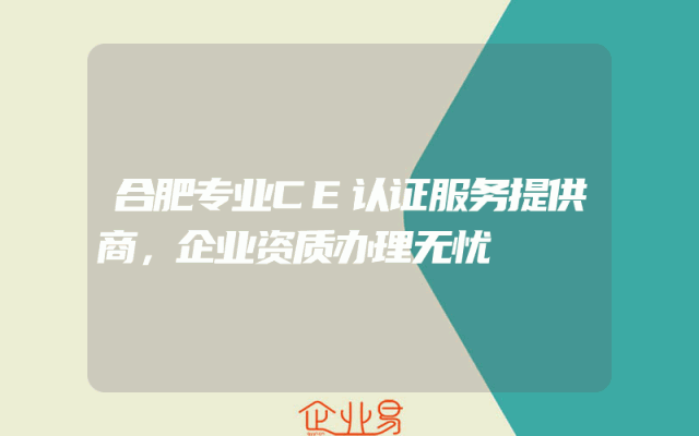 - 合肥专业CE认证服务提供商,企业资质办理无忧