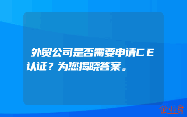 - 外贸公司是否需要申请CE认证?为您揭晓答案。