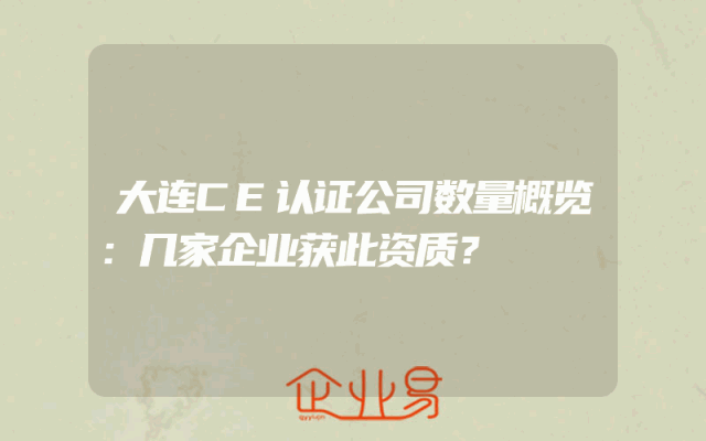- 大连CE认证公司数量概览:几家企业获此资质?