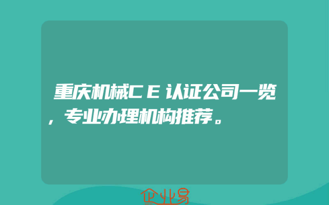 - 重庆机械CE认证公司一览,专业办理机构推荐。