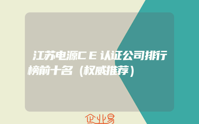 - 江苏电源CE认证公司排行榜前十名(权威推荐)