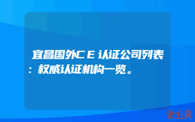 - 宜昌国外CE认证公司列表:权威认证机构一览。