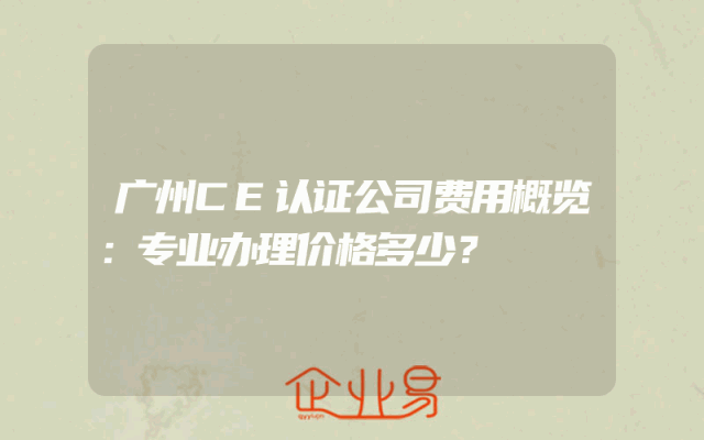 - 广州CE认证公司费用概览:专业办理价格多少?