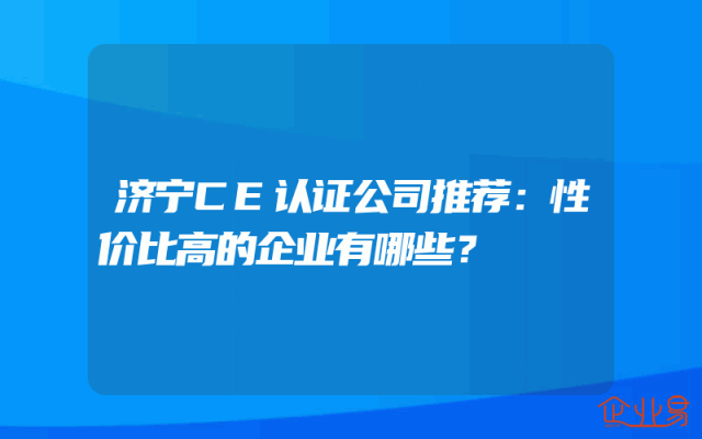 - 济宁CE认证公司推荐:性价比高的企业有哪些?