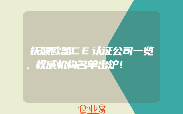 - 抚顺欧盟CE认证公司一览,权威机构名单出炉!