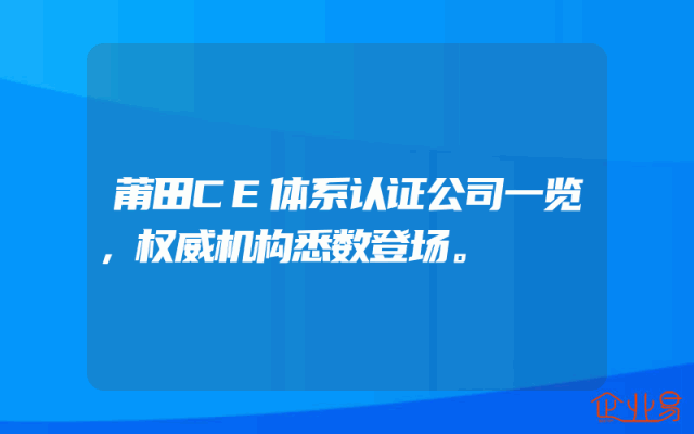 - 莆田CE体系认证公司一览,权威机构悉数登场。