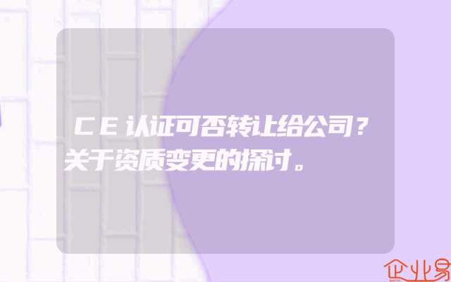 - CE认证可否转让给公司?关于资质变更的探讨。