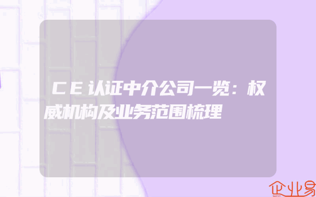 - CE认证中介公司一览:权威机构及业务范围梳理