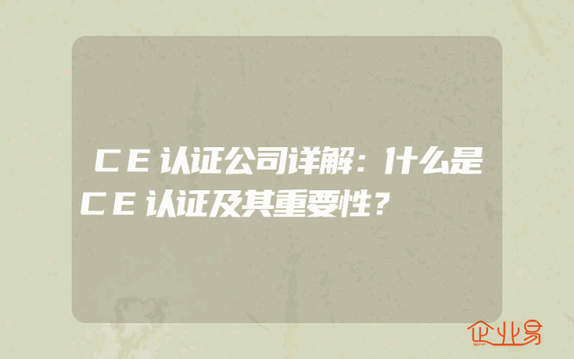 - CE认证公司详解:什么是CE认证及其重要性?