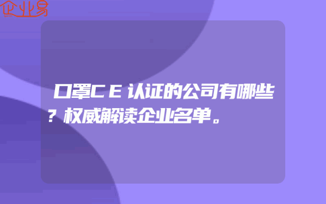 - 口罩CE认证的公司有哪些?权威解读企业名单。