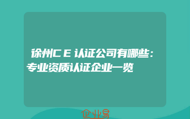 - 徐州CE认证公司有哪些:专业资质认证企业一览