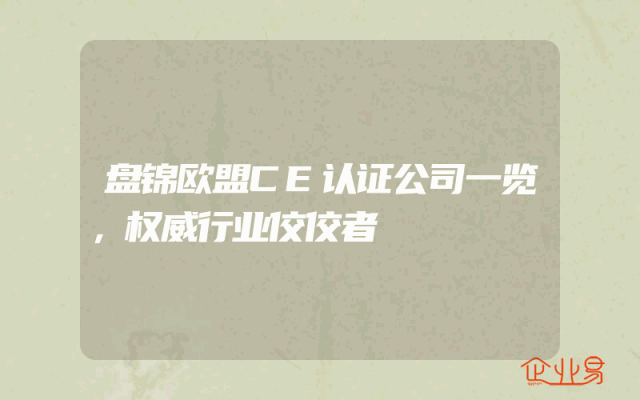 - 盘锦欧盟CE认证公司一览,权威行业佼佼者