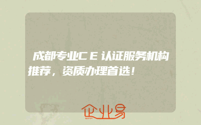 - 成都专业CE认证服务机构推荐,资质办理首选!