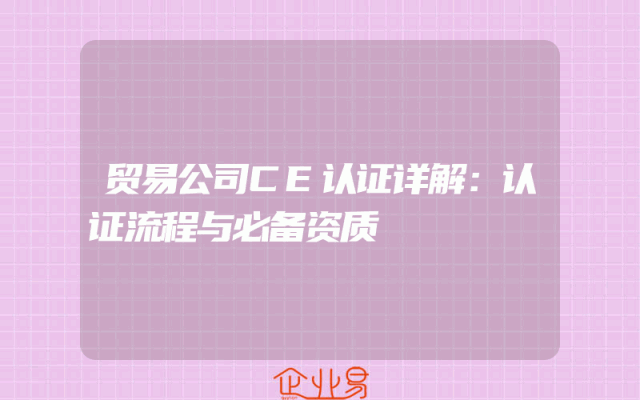 - 贸易公司CE认证详解:认证流程与必备资质解析一、CE认证概述在当今国际贸易中,产品的合规性对于任何一家公司来说都是至关重要的。对于在欧洲市场开展业务的贸易公司来说,产品的CE认证无疑是必不可少的。CE认证代表着产品符合欧盟相关的安全、健康、