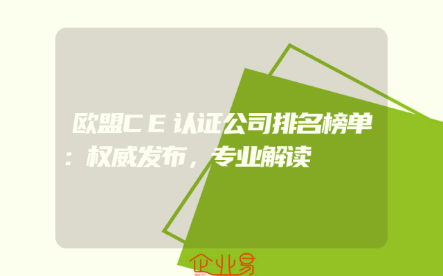 - 欧盟CE认证公司排名榜单:权威发布,专业解读