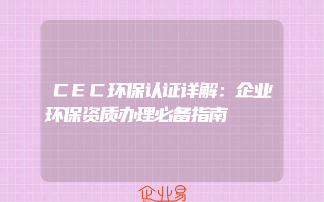 - CEC环保认证详解:企业环保资质办理必备指南一、CEC环保认证概述CEC环保认证是一种针对企业环保资质的权威认证,旨在评估企业在环境保护方面的表现,包括污染防治、资源节约、生态恢复等方面。随着环境保护意识的日益增强,越来越多的企业开始重视环