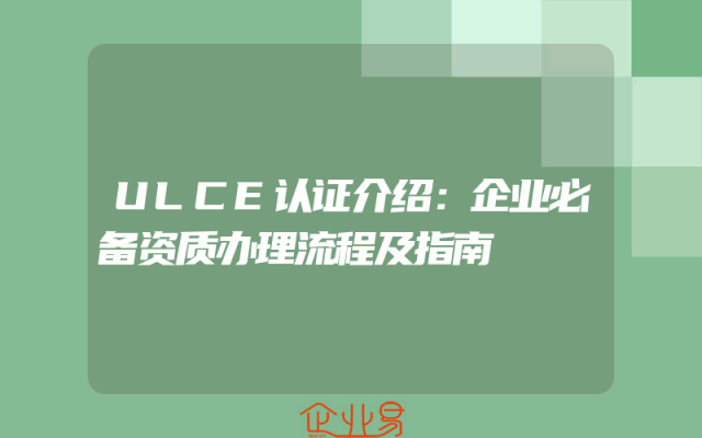 - ULCE认证介绍:企业必备资质办理流程及指南