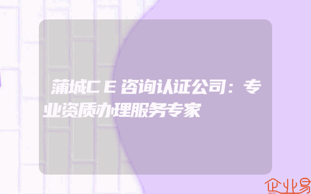 - 蒲城CE咨询认证公司:专业资质办理服务专家