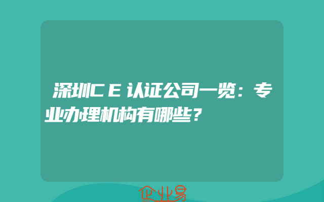 - 深圳CE认证公司一览:专业办理机构有哪些?