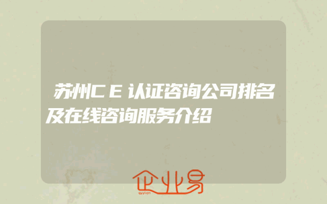 - 苏州CE认证咨询公司排名及在线咨询服务介绍一、苏州CE认证咨询公司排名概览在苏州这座充满活力的城市中,众多企业服务行业公司蓬勃发展,尤其在CE认证咨询领域,涌现了一批专业水平高、服务质量上乘的企业。这些公司在帮助企业顺利取得CE认证方面拥有
