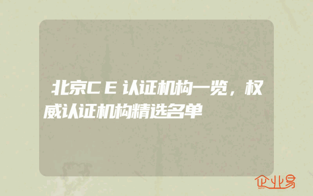 - 北京CE认证机构一览:权威认证机构精选名单一、CE认证简介CE认证作为欧盟市场的强制性安全认证标准,为在欧洲市场上销售的产品提供了重要的质量保障。在中国,尤其是北京地区的出口企业,对CE认证的需求日益增加。本文将介绍北京地区权威的C