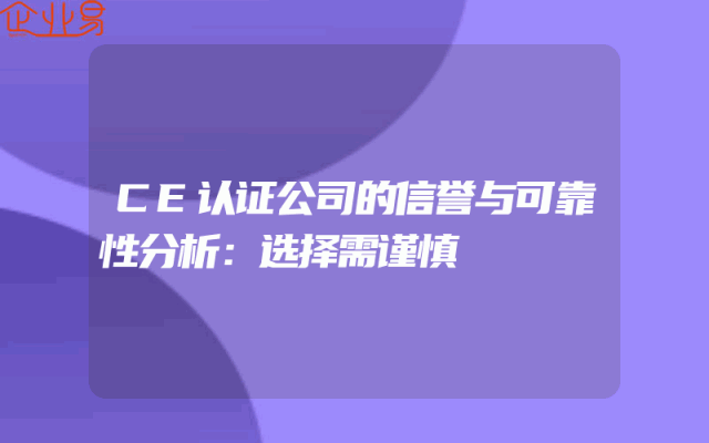 - CE认证公司的信誉与可靠性分析:选择需谨慎