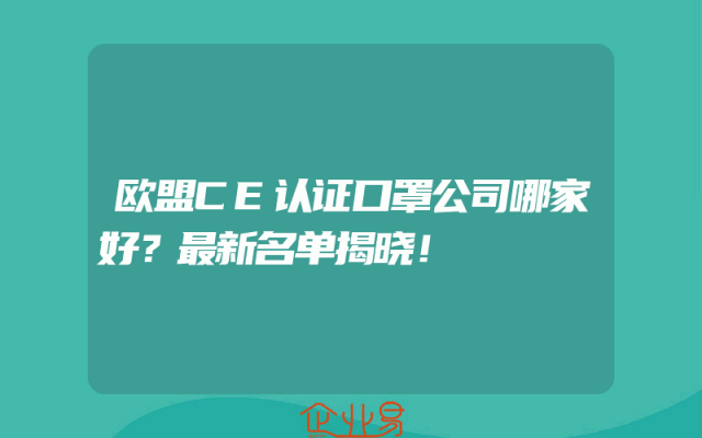 - 欧盟CE认证口罩公司哪家好?最新名单揭晓!