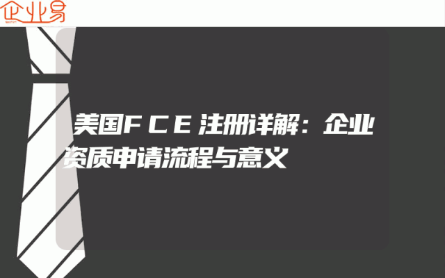 - 美国FCE注册详解:企业资质申请流程与意义一、美国FCE注册概述随着全球化的发展,越来越多的企业开始进军国际市场。美国作为全球经济的重要枢纽,其市场潜力巨大,引得众多企业争相进入。在美国开展业务,企业资质的重要性不言而喻。其中,美国FCE注