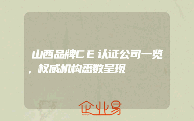 - 山西品牌CE认证公司一览:权威机构悉数呈现引言在中国经济转型的大背景下,企业的认证已经成为市场竞争力的体现。特别是作为拥有悠久历史和文化底蕴的山西,其品牌建设一直是企业和机构关注的焦点。特别是在CE认