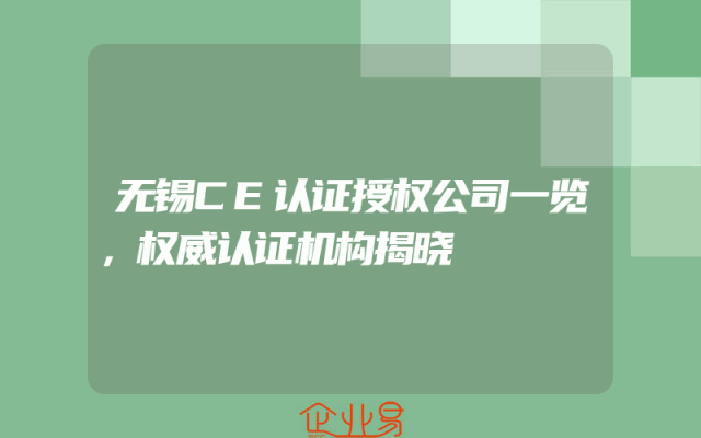 - 无锡CE认证授权公司一览,权威认证机构揭晓