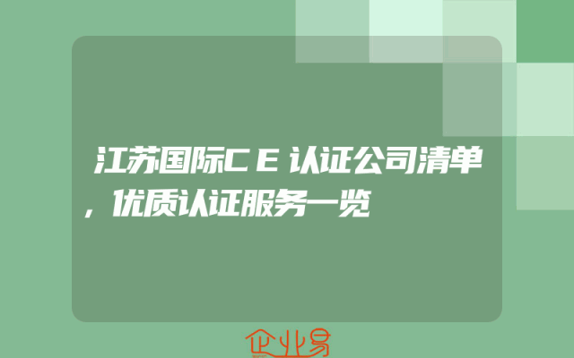 - 江苏国际CE认证公司清单,优质认证服务一览