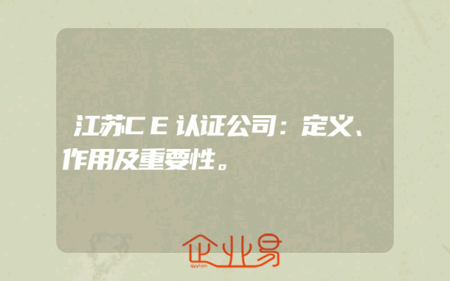 - 江苏CE认证公司解析:定义、作用及重要性一、CE认证公司的定义CE认证公司是一种专门为企业提供产品CE认证服务的机构。CE认证是欧洲联盟(EuropeanUnion)对于在市场上销售的产品的一种强制性安全认证,以证明产品符合欧盟的相关指令与