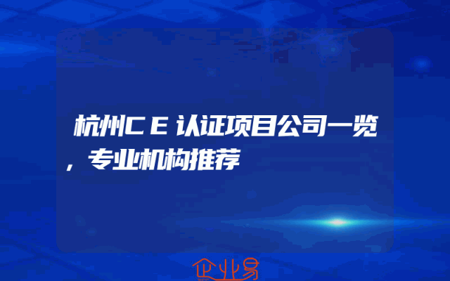 - 杭州CE认证项目公司一览——专业机构推荐解析一、引言杭州作为中国的科技创新城市,众多企业致力于提升产品质量和技术水平,以满足国内外市场的需求。在欧洲市场,CE认证作为一种重要的安全认证,成为产品进入欧洲市场的先决条件。本文将介绍杭州
