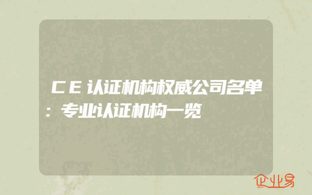 - 欧盟CE认证公司有哪些?权威认证机构一览。