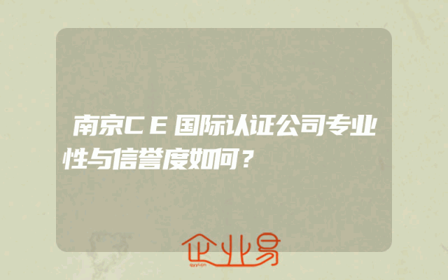 - 南京CE国际认证公司的专业性与信誉度如何?一、公司背景与资质南京CE国际认证公司作为一家专业从事认证服务的企业,其在业界拥有深厚的背景和丰富的经验。公司成立以来,始终致力于为客户提供全方位的认证解决方案。在资质方面,该公司拥有国际权威的认证