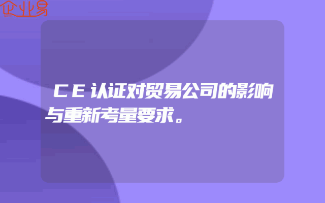 - CE认证对贸易公司的影响与重新考量要求一、CE认证的概念及其重要性CE认证是欧洲联盟(EU)对产品安全性能的一种强制性认证,任何进入欧洲市场的产品都必须符合欧盟的相关指令与标准,并通过CE认证。对于贸易公司而言,了解CE认证的要求与流程至关