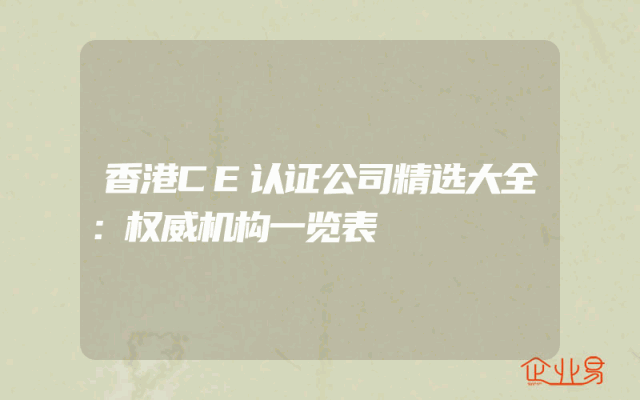 - 香港CE认证公司精选大全:权威机构一览表一、香港CE认证简介香港,作为国际金融、贸易和航运中心,拥有众多权威的认证机构。其中的CE认证是产品进入欧洲市场的通行证,许多企业选择在香港进行CE认证以便更便捷地进入欧洲市场。本文将为您介绍一些在香