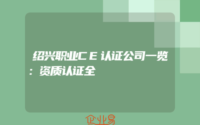 - 绍兴职业CE认证公司一览:资质认证全解析一、CE认证的重要性随着国际贸易的日益发展,产品出口到欧洲市场已经成为许多企业的目标。在欧盟市场,CE认证是产品合法上市的重要前提。对于绍兴地区的企业而言,选择一家专业的CE认证服务公司至关重要。本文