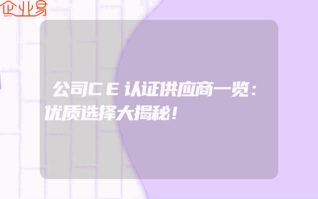 - 公司CE认证供应商一览:优质选择大揭秘!