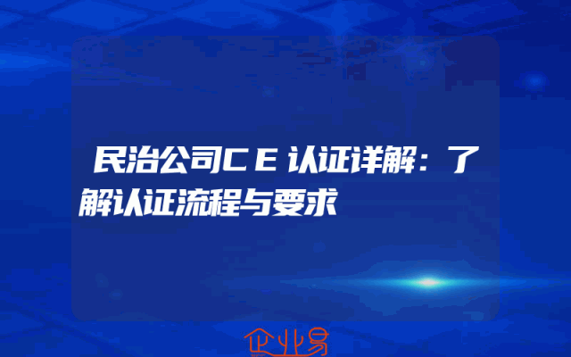 - 民治公司CE认证详解:了解认证流程与要求一、CE认证概述CE认证是欧洲市场针对产品安全与健康环保的一种强制性认证。对于想要进入欧洲市场的企业来说,获得CE认证是产品合法上市的关键步骤。民治公司作为一家追求卓越的企业,了解并遵循CE认证流程与