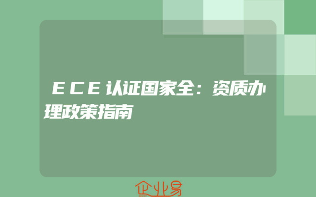 - ECE认证国家全解析:资质办理政策指南一、ECE认证简介ECE认证是一种针对电子产品的重要认证,其覆盖的国家众多,对于希望进入欧洲市场的企业来说,了解ECE认证国家的相关资质办理政策至关重要。只有获得了ECE认证,企业产品才能顺利进入欧洲市