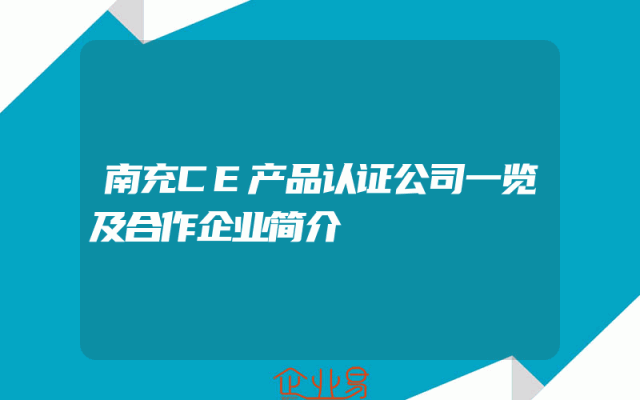 - 南充CE产品认证公司一览及合作企业简介
