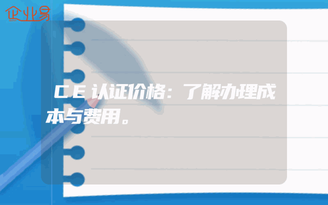 - CE认证价格:了解办理成本与费用。