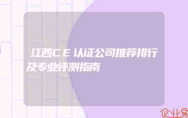 - 江西CE认证公司推荐排行及专业评测指南