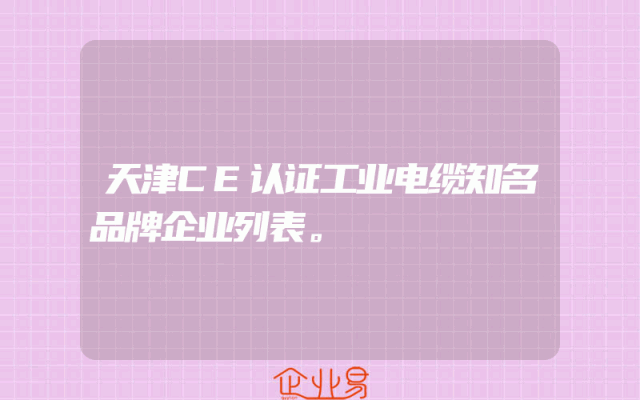 - 天津CE认证工业电缆知名品牌企业列表。