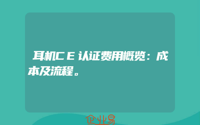 - 耳机CE认证费用概览:成本及流程解析一、CE认证简介CE认证是欧洲市场针对产品的强制安全认证,对于想要进入欧洲市场的耳机产品来说,获得CE认证是不可或缺的。这一认证确保了产品符合欧洲相关的健康、安全及环保标准。二、CE认证成本分析对于耳机产